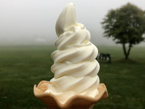 今朝の体重、62.5キロ。おはようございます。本日紹介するのは、長和町大門にある長門牧場です。牧場で食べるソフトクリームは最高です。ソフトクリームどれどれ、いただきまーす。うん、とってもおいしいです。この日はあいにくの空模様。すっごく寒い…