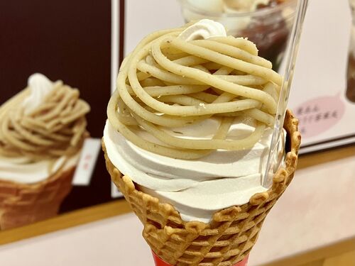 今朝の体重、64.0キロ! おはようございます。 本日紹介するのは、JR長野駅MIDORI内にある甘味屋さん、桜井甘精堂 甘味屋幾右衛門です。 モンブランソフト どれどれ、いただきまーす。うん、とってもおいしいに。 いつも牛乳系の白いソフトクリームば…